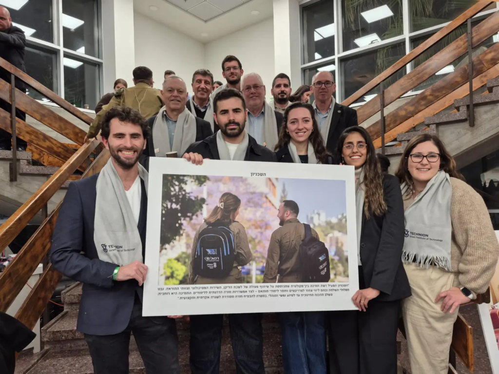 The Technion delegation included senior management representatives and members of the academic and administrative staff, alongside students – both women and men – who have served hundreds of days in reserve duty since the outbreak of the Swords of Iron war, including officers, combat soldiers, and staff personnel.